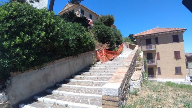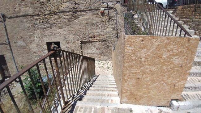 Alzata la bandiera bianca, si riscende, senza aver visto nulla, verso piazza Alighieri, ai piedi del Palazzo degli Anziani, passando da Via Rupi Comunali dove, la seconda rampa di scalette è tuttora messa in sicurezza come (quasi ci dimenticavamo) quella dello scalone Nappi che sale al Duomo.