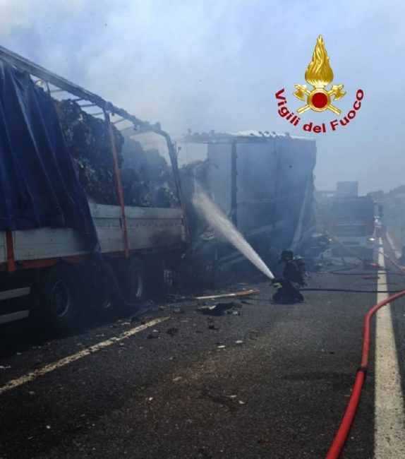 Sono di Jesi, in provincia di Ancona, e di Cepagatti, in provincia di Pescara, i due camionisti morti. Hanno entrambi una cinquantina di anni. Non sono invece gravi, per fortuna, le condizioni del terzo camionista che è stato trasportato all’ospedale di San Benedetto dall’ambulanza del 118. E’ quello che si trovava alla guida del primo dei tre tir protagonisti del tragico tamponamento che non lasciato scampo a chi si trovava al volante dei due bisonti che sono sopraggiunti alle spalle del primo tir. Sono stati momenti di grande panico, automobilisti e camionisti in transito hanno subito allertato i soccorsi e sul posto sono giunti i vigili del fuoco del Distaccamento di San Benedetto, ambulanze inviate dalla centrale operativa del 118, personale del Soccorso stradale e la Polizia Stradale. E’ intervenuta anche l’eliambulanza, giunta da Ancona, che non è atterrata, ma con un verricello ha calato due sanitari direttamente sul luogo del disastro. I pompieri hanno subito cercato di spegnere le fiamme, ma soprattutto cercare di tirare fuori dall’abitacolo una dei due camionisti morti, che è rimasto incastrato dentro. Subito dopo lo schianto, all’interno del tratto, è stato chiuso il traffico. Si sono registrati tre chilometri di coda. In corrispondenza dell’uscita – obbligatoria – di San Benedetto si sono registrati due chilometri di coda. Sono intervenuti volontari della Protezione Civile che sta provvedendo a distribuire bottiglie di acqua ad automobilisti e camionisti rimasti bloccati sotto il sole infernale.