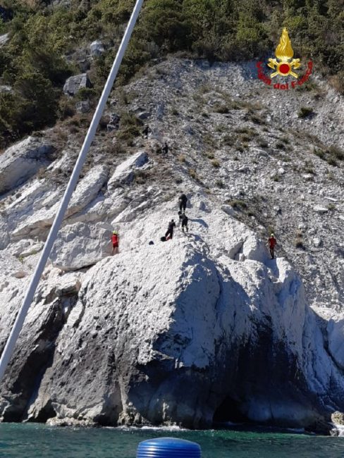 In realtà, si trattava di una donna di 30 anni finita sulla parete rocciosa del costone di fronte alla Vela, a 20 metri di altezza da livello del mare.