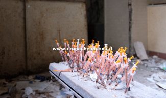 Le siringhe infilzate su una panca, in una palazzina all’ex Crass
