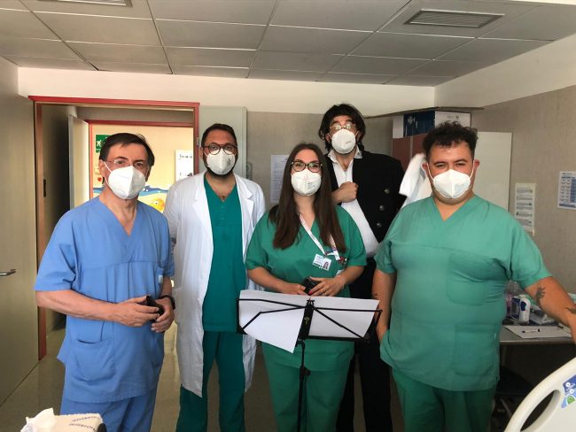 Il tenore David Mazzoni che ha partecipato ad Italia’s got talent arrivando al secondo posto ha fatto visita ad un paziente ricoverato amante dell’opera. «Il nostro dr. Pupozzi per l’occasione Pupozzotti è entrato nella camera del nostro campione iniziando a cantare delle arie dell’opera ed ecco che David Mazzoni travestito da infermiere ha corretto il dottore e iniziato a cantare lasciando tutti a bocca aperta. – racconta la presidente dell’associazione ‘Un battito di ali’, Valentina Felici-Tutta l’associazione un Battito di Ali ringrazia David per aver risposto immediatamente alla nostra richiesta e aver regalato un momento speciale al nostro campione ricoverato. Con la coordinatrice del reparto, dr.ssa Chiara Gatti abbiamo svolto tutte le procedure necessarie per rendere possibile questo regalo. Organizzare questi bellissimi eventi ha ripercussioni su tutto il reparto poiché poi tutti i piccoli e grandi pazienti hanno potuto godere della bella performance di David. Oggi abbiamo conosciuto una bellissima persona con una voce grandiosa, grazie David! E speriamo che questo sia solo l’inizio di una lunga collaborazione con il tenore Mazzoni».