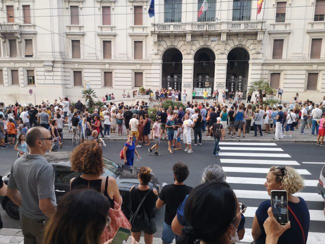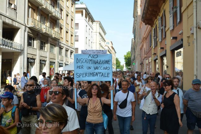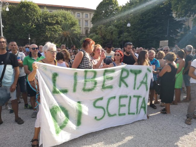 Organizzato anche tramite il canale Telegram “Basta Dittatura” l’appello a partecipare è stato accolto fortemente da parte delle tantissime persone che non approvano soprattutto la misura del Green Pass, obbligatoria per accedere ad alcuni servizi a partire dal 6 agosto.