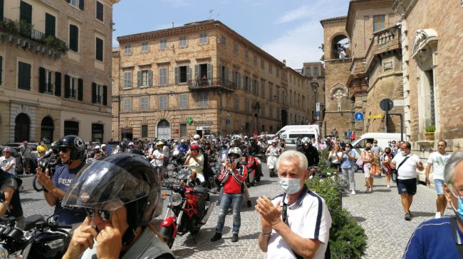 Applausi, commozione e un lungo corteo di moto, arrivate da tutte la Marche, per l’ultimo saluto a Moreno ‘Perpè’ Frontalini.
