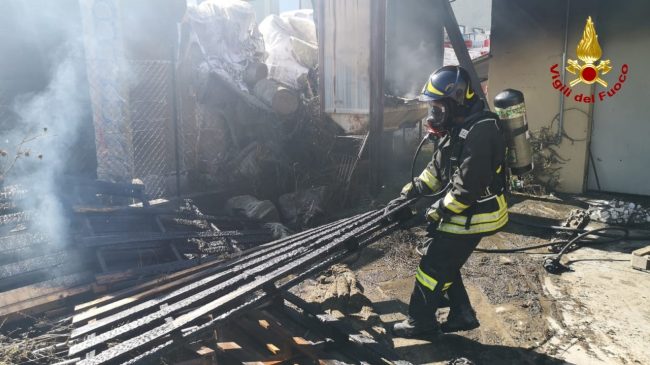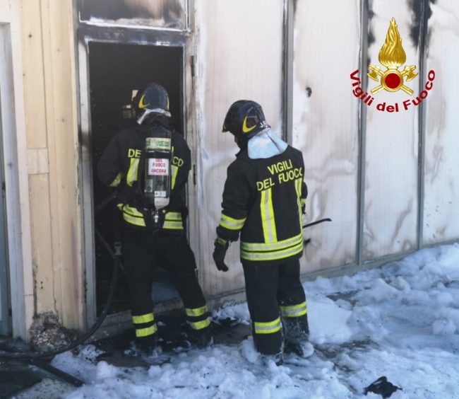 Fiamme in un capannone della zona industriale di via Barca a Villa Musone di Loreto.