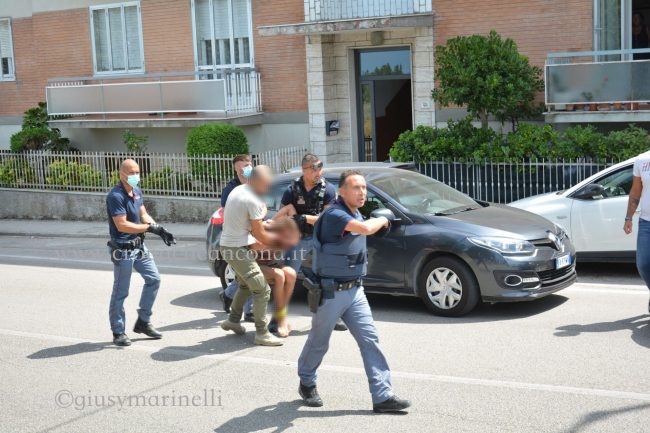 L’arresto non è stato semplice per come l’uomo ha saputo spostarsi nelle zone della Palombella, del Borghetto e quindi di Posatora tagliando per il parco Belvedere dove si è nascosto continuamente tra la vegetazione e i rovi.  Gli agenti delle Volanti e della Squadra Mobile lo hanno bloccato all’interno della sala da pranzo di un appartamento proprio in via Posatora  dove era entrato dopo aver sfondato la zanzariera della finestra lasciata aperta, trovandosi poi di fronte ad una donna con sua figlia, sedute a pranzare.