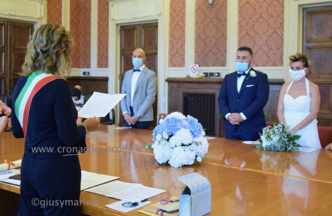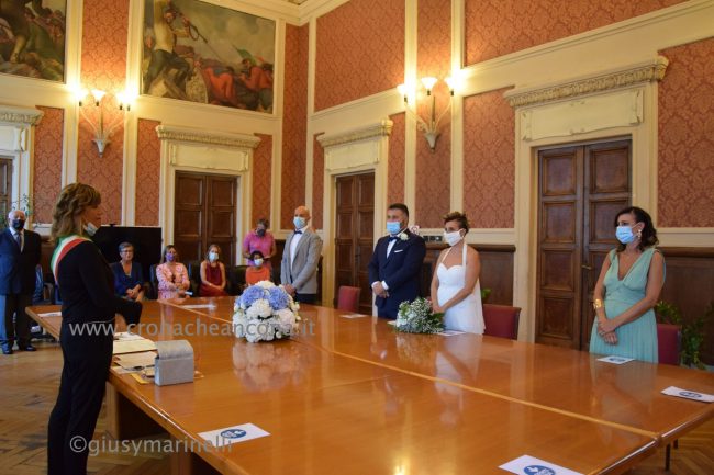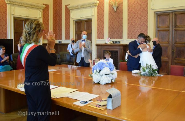Il consigliere comunale dei Verdi e vigile del fuoco, Diego Urbisaglia, si è sposato questa mattina in Comune, come aveva promesso a quella che da oggi è sua moglie: Gloria Picchio. Insieme, hanno 3 figli.