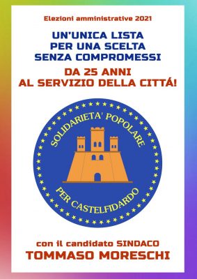 «Abbiamo finalmente ufficializzato la presenza del movimento alle prossime elezioni comunali, con una nostra lista ed il candidato sindaco, Tommaso Moreschi. – scrive in un post Solidarietà Popolare – Non vediamo l’ora di farvi conoscere la nostra squadra e il nostro programma.. a giorni comunicheremo la data della presentazione pubblica alla città». Al momento sono quindi 4 i competitor della sfida elettorale castellana. Con Tommaso Moreschi, saranno della partita il sindaco uscente 44enne Roberto Ascani (M5S e Castelfidardo Futura), la farmacista 62enne Gabriella Turchetti (Fare bene per Castelfidardo); l’imprenditore 58enne Marco Tiranti (Pd-Bene in Comune, Uniti e Attivi, Sinistra Unita e Azione Civica Solidale). I rumors non escludono nemmeno che possa spuntare un quinto nome dall’area della sinistra radicale prima del 2 settembre, data di presentazione di liste e simboli. Chi vivrà, vedrà.