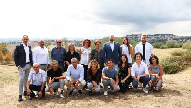 Tommaso Moreschi (primo a sinistra) con i 16 candidati al Consiglio comunale di Solidarietà Popolare per Castelfidardo