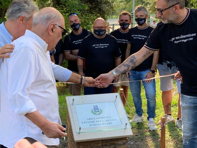 Un’area dedicata alle vittime dell’Heysel. Ha preso forma questo pomeriggio l’idea del club Camerano Bianconera, nato nel 2018, e abbracciata dall’amministrazione comunale di Camerano. La targa per commemorare le vittime della tragedia del maggio 1985 è stata scoperta questo pomeriggio alla presenza dell’assessore allo Sport Marco Principi e di alcuni rappresentanti di Camerano Bianconera. Presenti anche due superstiti dell’Heysel. La targa è stata collocata in via Scandalli, un’area dove sorge una piccola cittadella sportiva, con attrezzi dedicati, giochi per bambini e un pallone pressostatico. L’idea del club nasce non dai colori del tifo, quanto dalla volontà di non dimenticare la storia dell’Heysel e far sì che tragedie simili non si ripetano mai più. Prima della finale di Coppa Campioni tra Juve e Liverpool, allo stadio di Bruxelles morirono 39 persone, tra cui 32 italiani. Rimasero feriti più di 600 tifosi nelle ressa creatasi dopo lo sfondamento delle reti divisorie degli spalti e il crollo di un muro dello stadio.