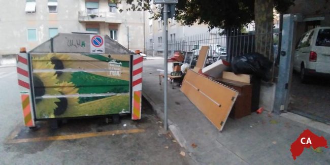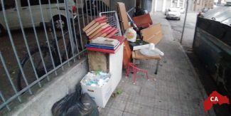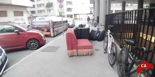 Abbandonati ancora una volta in mezzo alla strada, questa volta vi sono: divani, poltrone, ventilatori, comodini, armadietti, libri e riviste e chi più ne ha più ne… getti.