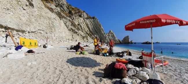 «La spiaggia era ben tenuta e non abbiamo dovuto raccogliere molto – ha detto Paolo Belelli, presidente del Circolo Naturalistico Il Pungitopo promotore dell’evento – mentre molto più impegnativo è stato il lavoro dei sub volontari dell’Associazione Mare Nostro che si sono dedicati ai fondali, recuperando non solo un grosso tronco che poi è stato riportato in porto, ma anche molti residui di reti». Tra gli iscritti all’evento anche due turisti di Padova che hanno voluto contribuire alla giornata dedicata alla tutela e alla conservazione di questa spiaggia meravigliosa rapiti dalla bellezza di questo tratto del Conero. L’occasione è stata anche propizia per rimarcare l’importanza di mettere in sicurezza il sentiero 302 “Passo del Lupo” con l’obiettivo di destagionalizzare il turismo nel momento in cui i traghettatori sospendono la loro attività al termine della stagione estiva. A questo progetto si sta particolarmente dedicando il presidente del Parco del Conero Daniele Silvetti che recentemente ha incontrato a Roma il sottosegretario Francesco Battistoni a cui è stato presentato lo studio di fattibilità e il piano economico degli interventi. I lavori per la messa in sicurezza del sentiero interessano l’intero tracciato e, in modo particolare, il piede della falesia. «Stiamo lavorando a questo progetto – ha ricordato Silvetti – convinti dell’importanza di intervenire sul consolidamento del sentiero, sia dal punto di vista della sicurezza che della promozione turistica del territorio, rendendo fruibile un percorso il cui divieto viene purtroppo eluso da tanti».