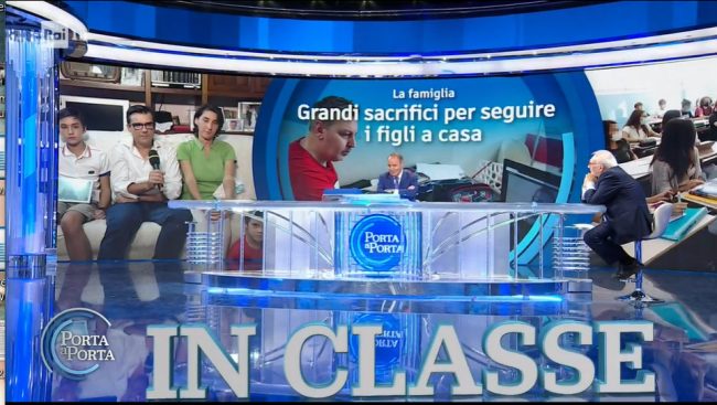I Capurso, fanno parte di ‘Famiglie Nuove delle Marche’, associazione che aderisce al Forum delle Associazioni Familiari delle Marche, è sono stati intervistati sul mondo della scuola nel confronto con il ministro Bianchi che si trovava in studio accanto al conduttore. La coppia ha tre figli: la primogenita Alessia ha 13 anni e frequenta il primo anno di liceo scienze applicate, Claudio ha 11 anni e frequenta la seconda media, mentre il più piccolo Valerio, 6 anni, proprio oggi inizierà a frequentare come ‘remigino’ la Primaria. Con la famiglia osimana e con il ministro all’Istruzione Vespa ha parlato della Dad e di quello che ha comportato per i nuclei familiari. Il papà ingegnere ha raccontato che per i primi tempi, prima che venisse introdotto lo smart working «abbiamo utilizzato le ferie per restare a casa con i nostri figli». Lo smart working entrato in vigore nella primavera del 2020 è stato definito dalla moglie Anna «il long working perché i tempi si allungano con i bambini a casa e le distrazioni sono tante». Altro problema da superare è stato quello della disponibilità di pc per far seguire le lezioni a tutti i figli contemporaneamente e della connessione wi fi.