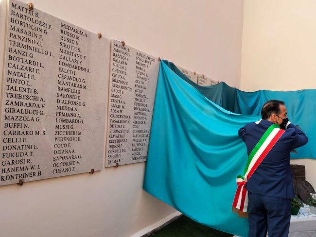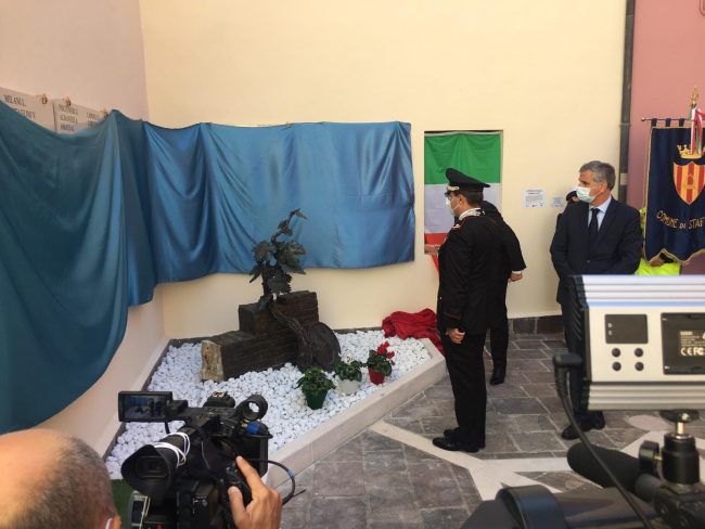 Sono le parole di Mirko Schio, presidente dell’associazione Fervicredo (Feriti e Vittime della criminalità e del Dovere), nel giorno in cui a Staffolo, alla presenza di autorità civili e militari si è tenuta l’inaugurazione del primo “Muro della Memoria”, lungo 8 metri e formato da 8 lapidi, che ricorda i nomi delle 381 vittime del terrorismo e delle stragi degli anni di piombo. Ai piedi del muro c’è una installazione in bronzo dedicata alla memoria del carabiniere Domenico Ricci, originario di Staffolo, scorta e autista di Aldo Moro, morto a 44 anni, nella strage di via Fani del 16 marzo del 1978. E proprio Giovanni Ricci, figlio dell’appuntato, ha inaugurato muro e monumento alla cerimonia che si è aperta con la lettura del messaggio del presidente della Repubblica, Sergio Mattarella. Presente anche la Fervicredo, con il segretario, Paolo Petracca, accompagnato da Laura Appolloni, senigalliese scampata alla strage del Bataclan a Parigi. «Per noi è un dovere e un onore essere qui – ha detto Petracca -, e vogliamo ringraziare anche il Comune di Staffolo, perché è fondamentale che proprio un’amministrazione pubblica indichi la strada del ricordo e della celebrazione delle nostre Vittime. Via Fani, ma anche tutti gli altri luoghi simbolo della barbarie che negli ‘anni di piombo’ sconvolse il paese, nonché tutti gli altri posti in cui la criminalità di ogni genere ha mietuto Vittime, e il ricordo di ognuna di quelle persone meravigliose, devono essere un monito, ma non un pensiero oscuro che annienta, bensì un faro luminoso che indica la strada giusta da percorrere evitando gli errori del passato»