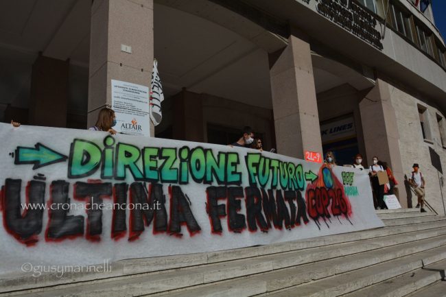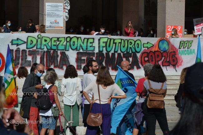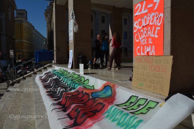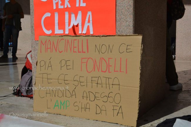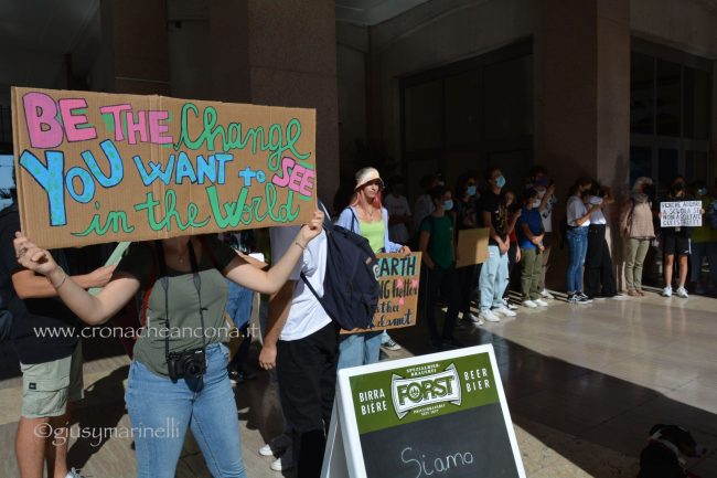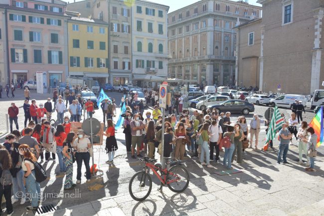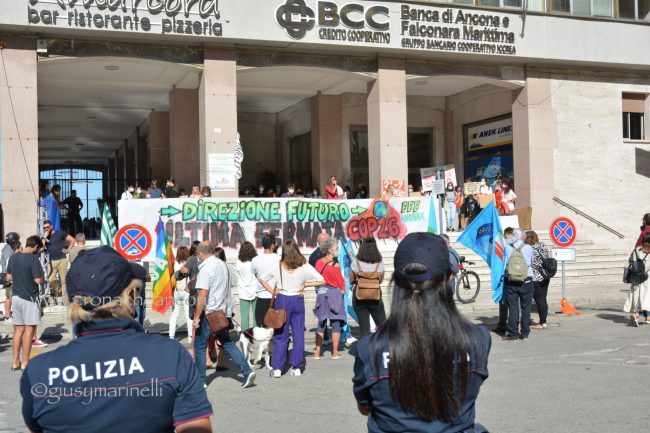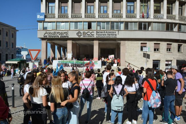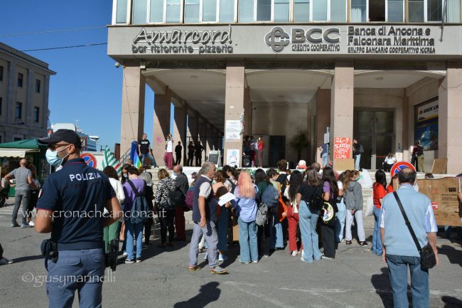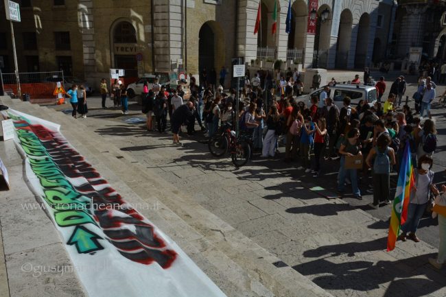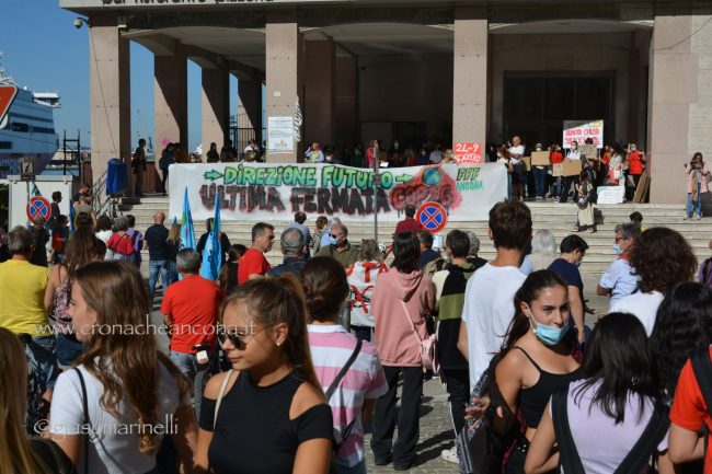 Un centinaio di persone, tra cui molti giovani, hanno preso in mano megafono e striscioni – «cambiamo il sistema, non il clima», «Vogliamo il numero chiuso solo per le Co2», «Perché andare a scuola se non ascoltate gli istruiti» – mantenere alta l’attenzione sul tema. Un appuntamento anche per festeggiare i tre anni di vita del movimento, partito dagli “strike” organizzati dall’allora quindicenne Greta Thunberg, che è riuscita a coinvolgere sempre più persone in giro per il mondo nella battaglia ambientalista. «Durante la pandemia abbiamo continuato a fare delle manifestazioni online – spiega Francesca Bompadre, una delle attiviste di Fridays for future Ancona -, ma abbiamo trovato difficoltà ad arrivare direttamente a nuovi attivisti ed attiviste: quello delle scuole chiuse, in particolare, è stato un fattore determinante per noi, ed inoltre, da attivisti/e, la piazza per noi è fondamentale. I social creano queste bolle in cui restiamo chiusi». Dopo tre anni, la sensazione di chi lo vive dall’interno è che il movimento sia «molto più strutturato rispetto all’inizio. Abbiamo sofferto molto la pandemia – puntualizza Bompadre – come numero di persone attive nei gruppi locali ed anche perché ha fatto sparire dal dibattito la crisi climatica, ma non molliamo». Allargando lo zoom alle questioni locali, «ad Ancona, tra le battaglie che stiamo sostenendo, c’è la costituzione dell’Area marina protetta – anche perché, quando si candidò a sindaco, la prima cittadina Mancinelli aveva detto che l’avrebbe sostenuta, poi si è tirata indietro –, il no all’ampliamento della banchina per le grandi navi da crociera, la riapertura alle bici del tratto del porto chiuso a giungo con un’ordinanza ed una revisione completa della mobilità cittadina».