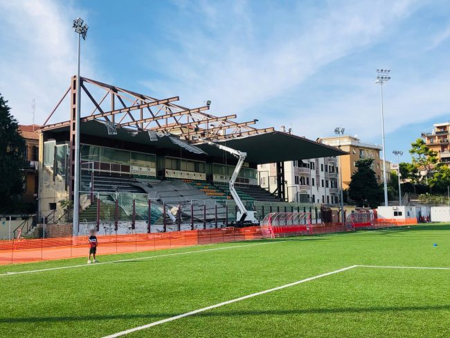 Stadio Dorico, un altro tassello per il restyling: varata la demolizione della gradinata scoperta, non più agibile. L’intervento consentirà di ampliare il centro tennis verso la curva nord e liberare lo spazio attualmente occupato nel portale di ingresso. Il progetto definitivo è stato approvato nei giorni scorsi dalla giunta comunale. Sul piatto, per la demolizione, un investimento di 800mila euro, tranche che fa parte del pacchetto di interventi che dovranno dare nuova luce allo stadio del viale della Vittoria. Già completo il cantiere per l’illuminazione a led e per il nuovo manto erboso. La demolizione della tribuna coperta è partita a metà settembre. La gradinata dovrà lasciare la sua funzione originaria. Le zone spettatori, infatti, «saranno limitate alla sola tribuna coperta, non essendo possibile garantire per la curva e per la gradinata est, la realizzazione dei varchi in quota con il campo da gioco, a meno di intervenire pesantemente su tali settori , a discapito della pista di atletica leggera. D’altra parte le esigenze di pubblico, per un stadio che non dovrà più necessariamente ospitare le competizioni del massimo livello calcistico in quanto tale funzione è demandata al nuovo Stadio Del Conero, devono necessariamente essere riviste» si legge nel progetto definitivo. La capienza (868 posti) «è più che sufficiente per le manifestazioni sportive previste in questa struttura, che corrispondono alle esigenze dei campionati giovanili, anche di ambito nazionale, e dei campionati fino all’eccellenza, quali quelli giocabili nel manto da gioco in erba sintetica, da squadre minori di quartiere».
