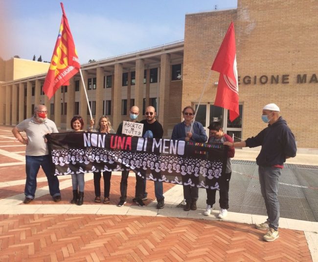 Interruzione volontaria di gravidanza sempre più «una corsa ad ostacoli, con la Giunta regionale di destra guidata da Acquaroli che persiste con più tenacia nella strategia di quella precedente di centro-sinistra volta ad indebolire tutto il sistema legato all’applicazione della legge 194 del 1978». Anche la Regione Marche fortemente sotto accusa, dunque, come tante altre regioni italiane e paesi esteri, con una «classe politica colpevole di aggravare il disservizio quando l’aborto dovrebbe essere garantito in pieno, a tutte le donne e secondo tutte le modalità previste dalle normative». Concetti spiegati con rabbia civile stamattina ad Ancona, davanti a Palazzo Leopardi (sede del Consiglio regionale) dalle componenti del movimento “Non una di meno – Marche”. Una manifestazione (parte di una mobilitazione iniziata a gennaio scorso) che in questo 28 settembre, “Giornata internazionale dell’aborto sicuro”, appoggiata dall’Onu, si è tenuta in una marea di città in tutto il mondo. Sanità Marche sotto accusa . hanno spiegato i manifestanti – in primo luogo per la dilagante obiezione di coscienza anti-Igv, per le lungaggini burocratiche e la mancanza di trasparenza, per la disinformazione sul tema e la scarsa formazione del personale, per le distorsioni operative in alcuni consultori, solo per fare alcuni esempi. Marte Manca, attivista di “Non una di meno”, ha approfondito vari aspetti dell’argomento durante il presidio, al quale hanno aderito l’Unione Sindacale di Base (USB) e Potere al Popolo. La media del 70% dei ginecologi/e e delle ostetriche obiettori nelle Marche (in Italia siamo a quota 75%) «è inaccettabile, e quindi invitiamo la Giunta regionale ad assumere nuovo personale se necessario e soprattutto ad assicurare il turn over dello stesso affinché non sia negato il diritto ad abortire», ha sottolineato Marte Manca. Emblematico il caso della provincia di Fermo, dove si registra «una obiezione di struttura, vietata dalla legge nazionale» con tutti e 10 i ginecologi in servizio obiettori e «le utenti che devono andare in Umbria per ottenere il certificato per l’Ivg per poi rivolgersi all’ospedale di Ascoli, dove l’Ivg si pratica solo il sabato». “Obiezione di struttura” anche a Jesi, con il “contentino” di un ginecologo che viene in ospedale da fuori una volta la settimana.