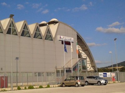 Il palas di via Striscioni è stato costruito nel 2004. Ad aggiudicarsi l’opera, nella forma dell’appalto concessione, era stata la società Geosport, costituita dalla Omac (socio costruttore), dalla partecipata del Comune Auxmedia (socio gestore del futuro impianto) e dall’Astea (socio finanziatore). I termini dell’accordo prevedevano che la Geosport avrebbe gestito il palazzetto per 15 anni per poi passarlo in proprietà al Comune. Nei primi anni la struttura sportiva è stata gestita da Auxmedia. I bilanci in costante sofferenza nel corso degli anni sono stati ripianati da Astea con l’accensione di un mutuo nel 2008 e il successivo subentro nella gestione del palasport di Geosport, diventata nel frattempo società interamente partecipata dal gruppo Astea.