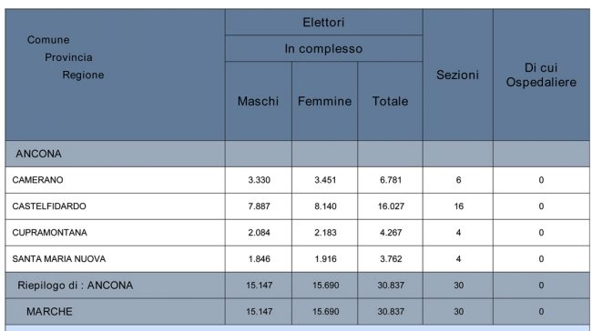 Gli elettori al voto nei quattro Comuni della provincia di Ancona, nella tabella pubblicata dalla Prefettura