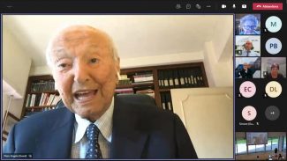 Piero Angela collegato in video conferenza all’incontro di apertura della Settimana dello Spazio di Osimo