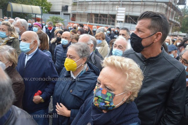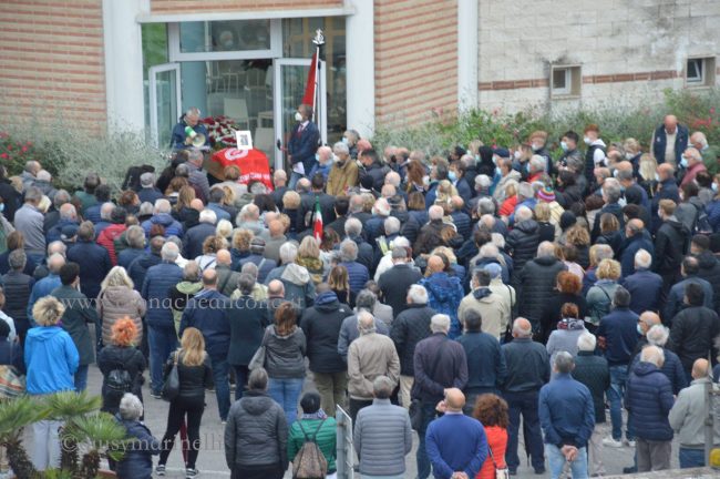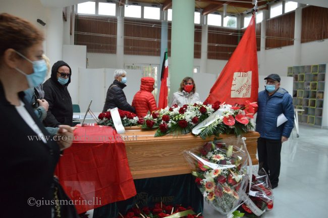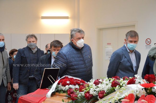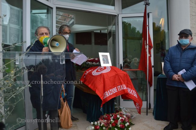 Dolore, commozione e ricordi per l’ultimo saluto a Eugenio Duca, l’ex sindacalista e parlamentare dorico morto martedì mattina per una malore improvviso. Questo pomeriggio, a partire dalle 15, l’addio nella sala del commiato del cimitero di Tavernelle. A salutare l’ex candidato sindaco alle Comunali del 2009 ed esponente del centrosinistra, una folla commossa che non si è fatta scoraggiare dal maltempo. Per evitare assembramenti all’intera della sala, la bara è stata esposta sotto il portico per la durata della funzione, caratterizzata dai ricordi e dagli interventi non solo portati dai familiari, ma anche da amici e colleghi di Duca, come il sindaco Valeria Mancinelli e l’osimano Paolo Guerrini, ex funzionario del Partito Comunista e senatore negli anni in cui Duca era in Parlamento. Tra i presenti anche il capogruppo dem in Regione Maurizio Mangialardi, l’ex senatrice Silvana Amati e l’assessore dorico Stefano Foresi. Al termine degli interventi, Duca – morto a 71 anni – è stato salutato sulle note di Bella Ciao. Sulla bara, la bandiera rossa della Filt Cgil, Federazione italiana lavoratori trasporti.