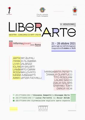Torna la mostra LiberArte, giunta alla V edizione. Patrocinata dal Comune di Ancona e organizzata dal circolo culturale ‘Carlo Antognini’, ecco la mostra concorso di Arti visive che vede quindici artisti competere tra loro, tra oli, fotografie, acquerelli, tempere ecc. oltre a due incontri letterari.