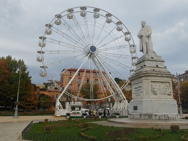 E’ entrata in funzione oggi la ruota panoramica in piazza Cavour. L’attrazione, tipicamente natalizia, è stata installata in anticipo rispetto alle festività 2019-2020. Lo scorso anno, causa Covid, non era stata montana. Rimarrà in funzione per tutto il periodo delle feste e fino al 23 gennaio. Tre mesi, dunque, per poter fare un giro e ammirare dall’alto la città. Per gli adulti il prezzo del biglietto è di 6 euro, 4 euro per i bimbi fino ai 10 anni. Già oggi, nonostante la pioggia, sono fioccati i primi selfie davanti alla ruota.