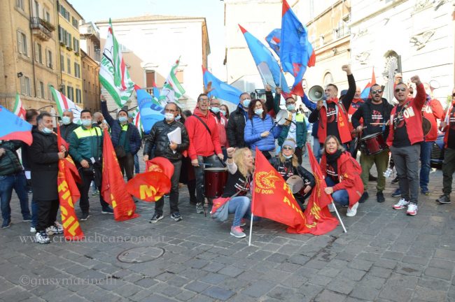 Bandiere, striscioni, tamburi e megafoni. Si fa sentire il Coordinamento unitario del gruppo Elica – composto da Fiom Cgil, Fim Cisl e Uilm –, questa mattina in presidio di fronte alla Prefettura di Ancona. Si fa sentire per tenere alta l’attenzione su una vertenza che va avanti ormai da mesi.