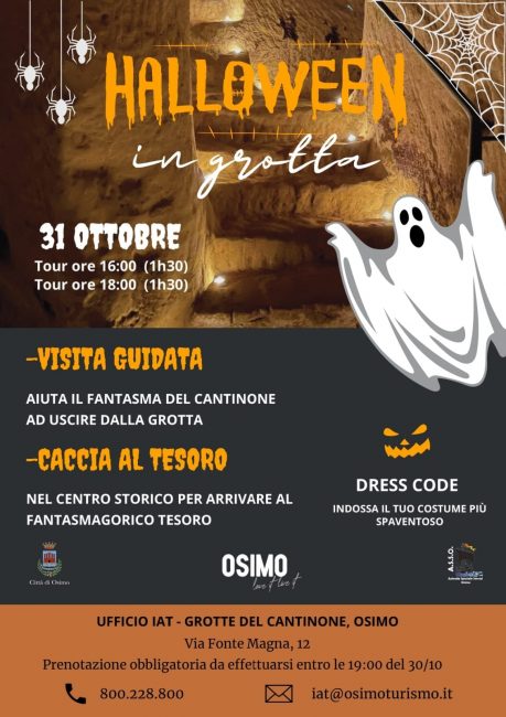 Un pomeriggio per i più piccoli tra il centro storico e le grotte del Cantinone di Osimo per divertirsi e conoscere i segreti osimani. Per domenica prossima 31 ottobre, è in programma ad Osimo l’evento ‘Halloween in Grotta’: sono previste visite guidate e caccia al tesoro a cura dell’ufficio Iat del Comune con due possibili visite guidate: alle 16 e alle 18. Si può partecipare vestiti in costume per la festa più paurosa e divertente ma la prenotazione è obbligatoria al numero verde 800228800. Sarà un week end ricco di iniziative quello che si appresta a vivere la città dei senza testa. La Società Operaia di Mutuo Soccorso ripropone infatti il Castagna Day, giunto alla 16esima edizione, nell’ambito della Festa d’Autunno che movimenterà il centro storico nel ponte di Ognissanti. Mercatini, cantori itineranti, giostre e animazione per i più piccoli con truccabimbi e da sabato mercatino di prodotti tipici in piazza Boccolino e degustazioni gastronomiche al chiostro del convento di San Francesco. Per entrare sarà necessario il green pass.
