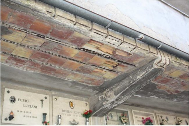 Struttura in calcestruzzo ammalorata in alcuni settori del cimitero di Santa Maria a Fabriano