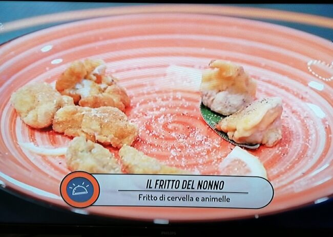 La prima manche era una specie di “sfida all’ultimo fritto”. Nella cassetta degli ingredienti abbiamo trovato, in sintonia con Halloween, cervello e animelle con carciofi. Non avevo mai mangiato le animelle, per cui ho cominciato subito con gli imprevisti. Mi sono concentrata su due tipi diversi di frittura, una impanatura classica per il cervello e il carciofo, una pastella più densa per le animelle. Non metto mai troppo sale per non coprire troppo i sapori, e Ivan, il concorrente più agguerrito, ha giocato su questo, ma il mio fritto è risultato comunque il migliore.