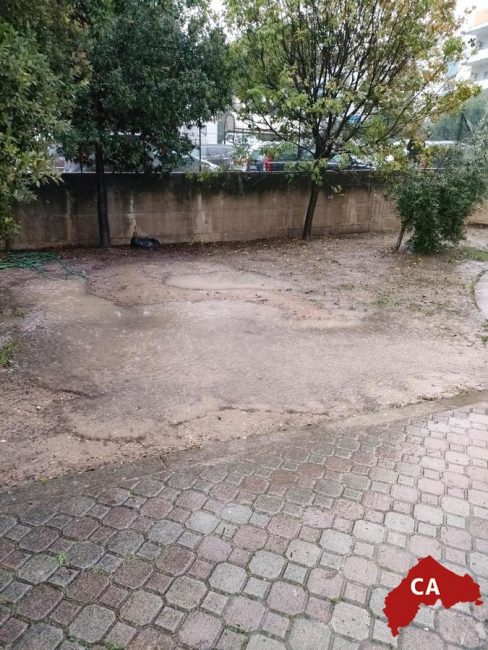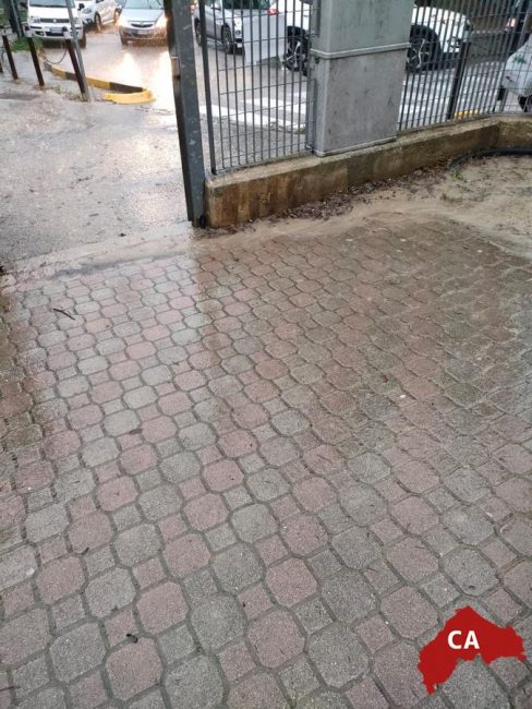 La pioggia crea dunque «una serie di pozzanghere e inoltre – aggiungono – la pavimentazione situata nella parte posteriore si trova in pendenza e aggiunge ulteriore acqua che si raccoglie tutta all’uscita. Ci sono giornate – dicono – durante le quali i bimbi si trovano ad uscire con l’acqua che arriva alle caviglie».