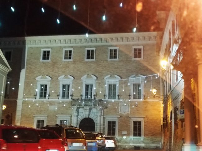 Le luminarie sono state montate venerdì sera e accese ieri per le vie del centro di Osimo e, a sorpresa, un cielo di lucine ha creato un’atmosfera molto natalizia anche in Piazza Dante oltre che su Corso Mazzini.
