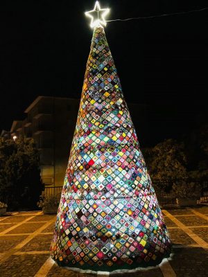 L’albero realizzato all’uncinetto dalla parrocchiane di Santa Maria della Misericordia di Osimo