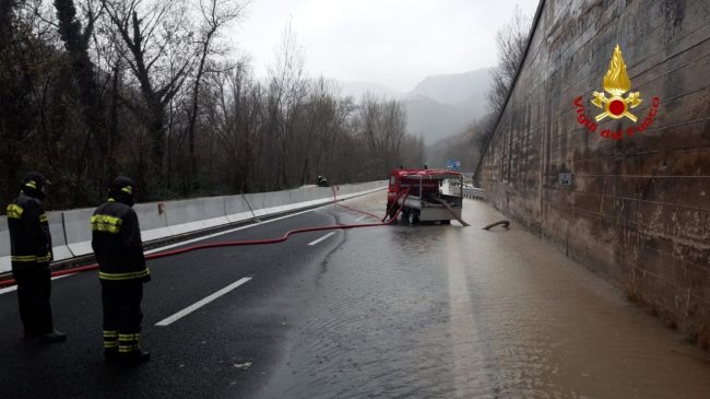 Nel pomeriggio l’emergenza è rientrata. Situazione critica anche nell’area compresa tra Loreto, Castelfidardo e Osimo, con l’esondazione del Musone. I campi sono stati invasi di acqua e fango, così come la statale adriatica. Gli agricoltori dovranno contare i danni arrecati ai campi. A causa della piena, a Campocavallo, il conducente di un furgone rischiava di rimanere intrappolato all’interno del suo veicolo. E’ stato portato in salvo dai vigili del fuoco. Osservato speciale anche l’Esino. Per precauzione, il sindaco di Jesi Massimo Bacci ha ritenuto opportuno chiudere due ponti: il San Carlo e il Granita. Smottamenti e allagamenti a Fabriano, dove s’è verificata anche una frana nella strada d’accesso (crollata in parte) alla frazione di Moscano. Ad Ancona situazione sotto controllo, ad accezione dei danneggiamenti subiti dai mercatini natalizi collocati lungo corso Garibaldi. Allagamenti alla Baraccola. A Genga in serata l’emergenza non era ancora finita: una squadra dei vigili del fuoco con motopompa e idrovora è intervenuta sulla SS76, direzione Roma, per l’acqua che si è riversata sulla carreggiata. La strada è stata chiusa al traffico in direzione Roma. Quasi tutta la provincia ha dovuto fare i conti con strade e sottopassi chiusi. E domani, un nuovo bollettino: allerta ‘gialla’ per il rischio idraulico e idrogeologico.