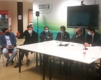 Un momento del confronto di questa mattina tra il governatore delle Marche, i capigruppo regionali e i rappresentanti sindacali dei lavoratori Caterpillar