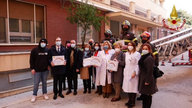 La sorpresa dei Vigili del Fuoco ai piccoli del Salesi
