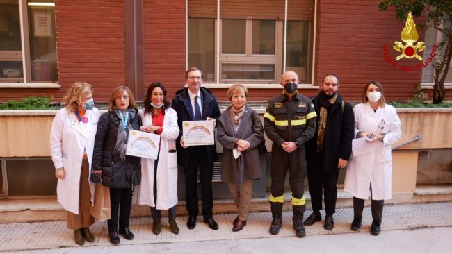 Gran sorpresa quella fatta questa mattina dai Vigili del Fuoco ai piccoli ospiti dell’ospedale pediatrico Salesi di Ancona.