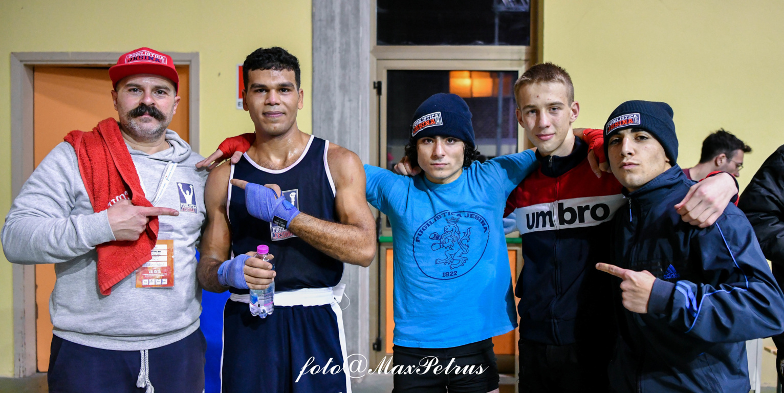 Pugilistica Jesina da sx maestro Lorenzo Alessandrini, Jamel Abroud, Diego Pellonata, Davide Kolodziej, Nur Mujahed