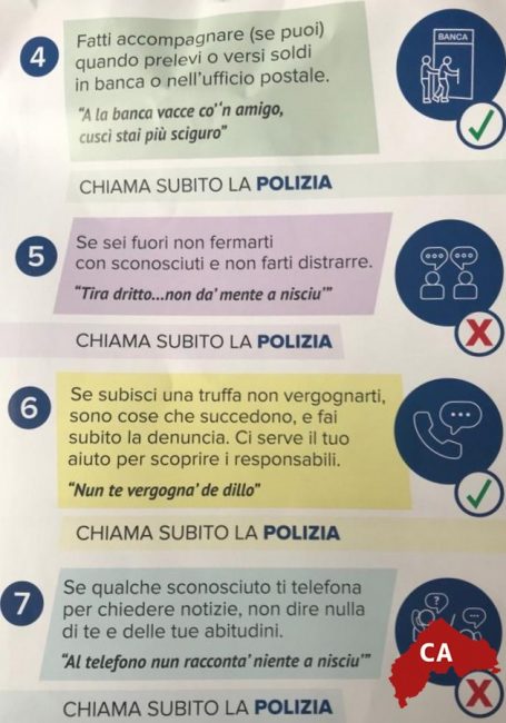 «Pensiamo che questi consigli possano essere importanti – ha proseguito – in termini di prevenzione, perché purtroppo queste truffe continuano ad accadere. Sono entrato in polizia 30 anni fa, e le stesse truffe di allora purtroppo si ripropongono anche oggi, con qualche leggera variante. L’attività repressiva non è dunque sufficiente e dobbiamo lavorare molto sull’informazione e renderci conto che sono fenomeni di una certa importanza. Truffe odiose – ha aggiunto – perché spesso non vengono poi denunciate a causa di una certa vergogna che prova l’anziano nel raccontarla».