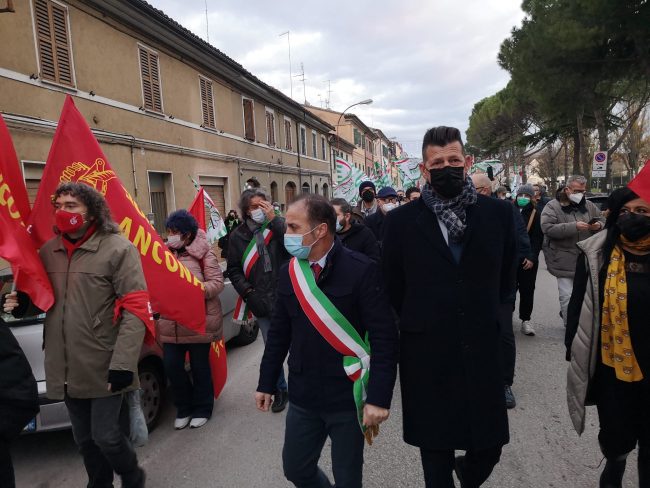 «Credo che sia doverosa la mia presenza a questo corteo per testimoniare la mia vicinanza ai lavoratori e al territorio, per ribadire una preoccupazione vera per questa vicenda e per incontrare anche i sindacalisti per fare il punto sulle possibili strategie dopo l’incontro in Regione di lunedì scorso» ha sottolineato margine del corteo l’assessore regionale Stefano Aguzzi che ha partecipato alla manifestazione con il governatore Acquaroli, e l’assessore Saltamartini, i consiglieri regionali, comunali, il neo eletto presidente della Provincia Daniele Carnevali, il vice sindaco Luca Butini (il sindaco Massimo Bacci è ricoverato in ospedale per Covid), alcuni sindaci della Vallesina in fascia tricolore, delegazioni di associazioni (tra cui Legambiente e Anpi) e addetti di altre aziende (tra le quali Raffineria Api e altri metalmeccanici). Tra i parlamentari presenti anche Laura Boldrini, ex presidente della Camera dei Deputati, l’on. Alessia Morani (Pd) e l’on. Nicola Fratoianni (SI).