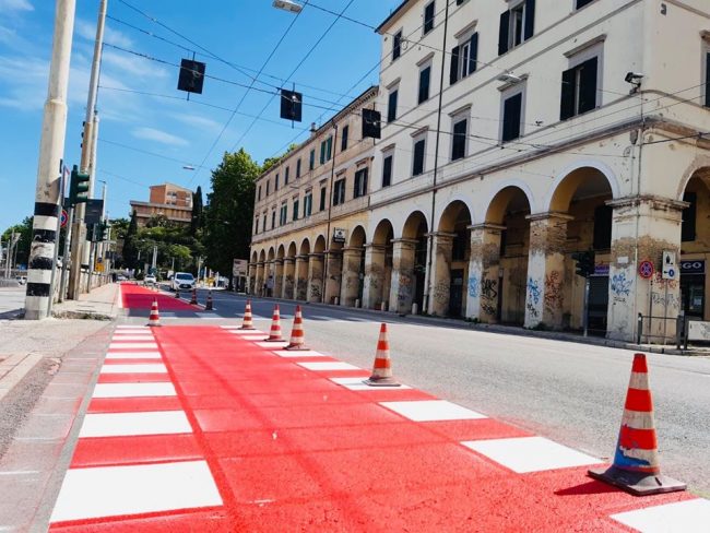 carreggiata la presenza della pista ciclabile su sede propria, alla stessa quota del marciapiede esistente. È prevista inoltre la realizzazione di nuove isole spartitraffico nelle due vie al seguito della variazione di geometria dell’intersezione a rotatoria». Su tutto il percorso ci sarà «la realizzazione di strisce pedonali in attraversamento della pista della stessa larghezza minima di 2,50 m., in continuità dell’attraversamento della carreggiata stradale, realizzati in materiale termoplastico». Per la realizzazione dei nuovi percorsi ciclabili viene utilizzato uno strato di pavimentazione in conglomerato bituminoso in pasta con ossidi di ferro. Della somma totale da investire per la nuova ciclabile, quasi 600mila euro sono garantiti dal Ministero dell’Ambiente e 29mila euro dalla Regione Marche. Il progetto è inserito nel piano triennale delle opere pubbliche.