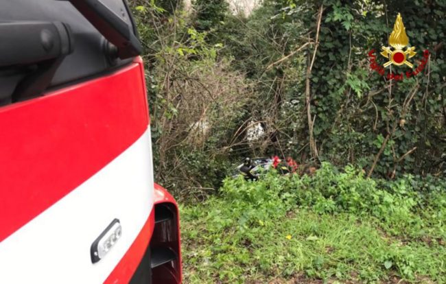 La squadra di Ancona è stata allertata per un’auto uscita di strada e poi finita nella fitta vegetazione della scarpata sottostante.