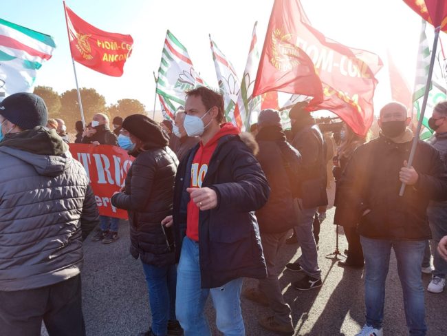 La mobilitazione è stata decisa dagli operai al termine dell’assemblea convocata questa mattina da Fim, Fiom e Uilm nello stabilimento di via Roncaglia, all’esito di una video-conferenza dei sindacati con i rappresentanti di Confindustria e della multinazionale che ha annunciato la procedura di mobilità lo scorso 10 dicembre. I licenziamenti collettivi scatteranno dal 23 febbraio se non sarà raggiunto un accordo sindacale nei 75 giorni concessi dalla legge. Il tempo fugge e Mirco Rota (Fiom nazionale), presente con i rappresentanti regionali e territoriali della sigla sindacale, ha riferito ai lavoratori della richiesta mossa all’azienda, quella di rallentare la procedura per valutare le proposte di eventuali acquirenti del sito jesino, che operano nello stesso ramo e comparto. Uno spiraglio, quello della vendita, lasciato trapelare dall’assessore regionale Stefano Aguzzi già nel giorno del grande corteo del 23 dicembre scorso a Jesi. Pare che si sarebbe fatta avanti un’azienda della provincia di Bergamo, ma dettagli e prospettive sono ancora tutti da mettere a fuoco. Si vocifera anche di un possibile sopralluogo fissato per la prossima settimana. Ulteriori azioni per la vertenza, con il conto alla rovescia che sta correndo sempre più velocemente verso la data clou di febbraio, la trasferta capitolina dei lavoratori in programma per il 19 gennaio con mobilitazione davanti al Mise.