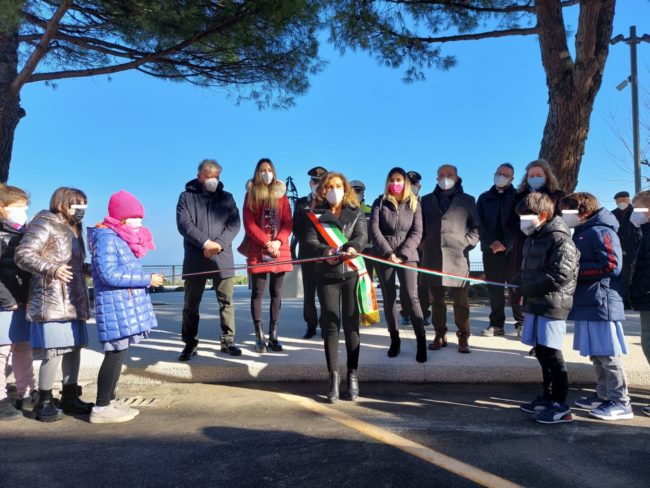 Il Balcone del Golfo è stato restituito alla città dopo un profondo restyling. L’inaugurazione nella mattinata di oggi ha permesso ai falconaresi di riappropriarsi dell’area più panoramica di Falconara Alta, affacciata sul golfo di Ancona. A tagliare il nastro è stata il sindaco Stefania Signorini, affiancata dagli assessori Valentina Barchiesi, Romolo Cipolletti e Clemente Rossi, dal presidente del Consiglio Luca Cappanera e da alcuni consiglieri comunali, alla presenza di tanti cittadini. Hanno partecipato alla cerimonia il tenente Michele Ognissanti comandante della Tenenza dei carabinieri, don Marco Castellani parroco di Falconara Alta che ha benedetto il belvedere, una scolaresca della vicina scuola Dante Alighieri con la dirigente Rosa Martino e imprenditori titolari di attività che hanno investito sul borgo. Il progetto di ristrutturazione, firmato dall’architetto Serena Marinelli (presente questa mattina) e illustrato ai residenti l’estate scorsa, ha permesso di creare una nuova pavimentazione, percorsi liberi da barriere architettoniche, di installare un sistema di videosorveglianza e un impianto di filodiffusione, oltre a una illuminazione che renderà ancora più suggestivo il grande parco nel cuore del centro abitato e permetterà di viverlo in piena tranquillità anche di notte. Gli operai si sono messi all’opera nel settembre scorso e i lavori sono proseguiti fino ai giorni scorsi, compatibilmente con le condizioni meteo e la disponibilità dei materiali. Le opere hanno avuto un costo di circa 200mila euro.