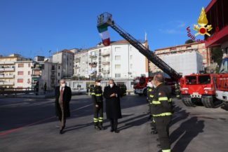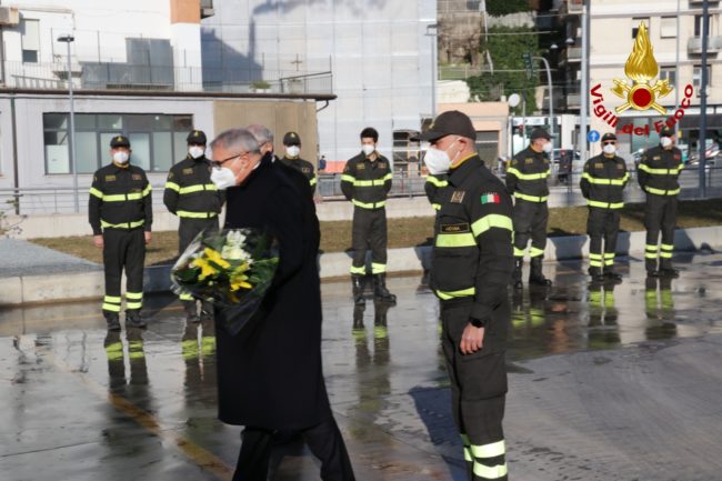 Il prefetto ha incontrato il personale in turno di servizio che, nei diversi ruoli, costituisce il dispositivo di soccorso a favore della cittadinanza. Successivamente ha deposto un mazzo di fiori al monumento ai Vigili del fuoco caduti in servizio, quale testimonianza verso coloro che hanno immolato la propria vita per il prossimo.