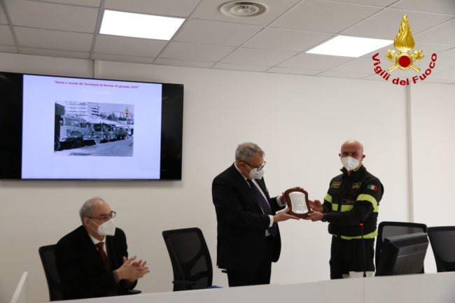 E’ stato anche ricordato che nella giornata odierna ricorre il cinquantenario della prima scossa di terremoto che è stata l’inizio dello sciame sismico che nel 1972 ha colpito Ancona per diversi mesi e che ha visto i Vigili del fuoco intensamente impegnati nel soccorso e assistenza alla popolazione.