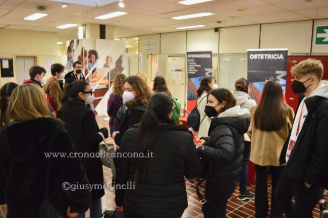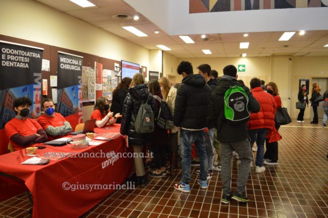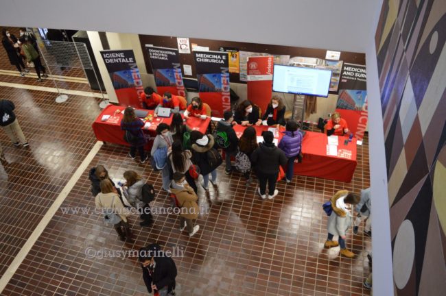 «Ancora non abbiamo le idee molto chiare – ammettono invece Michele, Federico e Thomas, all’ultimo anno al Galilei – e siamo qui per orientarci tra le varie Facoltà. È stato utile ed approfondiremo nei vari stand». Anche per loro, la prospettiva è quella di formarsi nelle Marche, come anche per Caterina, studentessa al V anno del Galilei che vorrebbe studiare Medicina all’Univpm, «sperando di superare il test d’ammissione», incrocia le dita. «Mia sorella è iscritta ed anche io mi sono sempre interessata a questo ambito, quindi penso che possa essere la strada giusta». Guarda invece all’estero la sua amica Giulia, anche lei orientata su Medicina: «a livello di ricerca, l’Italia non è molto sviluppata», commenta.