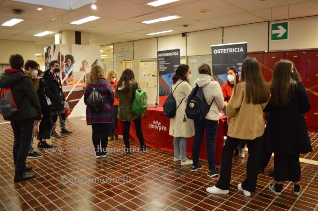«Ancora non abbiamo le idee molto chiare – ammettono invece Michele, Federico e Thomas, all’ultimo anno al Galilei – e siamo qui per orientarci tra le varie Facoltà. È stato utile ed approfondiremo nei vari stand». Anche per loro, la prospettiva è quella di formarsi nelle Marche, come anche per Caterina, studentessa al V anno del Galilei che vorrebbe studiare Medicina all’Univpm, «sperando di superare il test d’ammissione», incrocia le dita. «Mia sorella è iscritta ed anche io mi sono sempre interessata a questo ambito, quindi penso che possa essere la strada giusta». Guarda invece all’estero la sua amica Giulia, anche lei orientata su Medicina: «a livello di ricerca, l’Italia non è molto sviluppata», commenta.