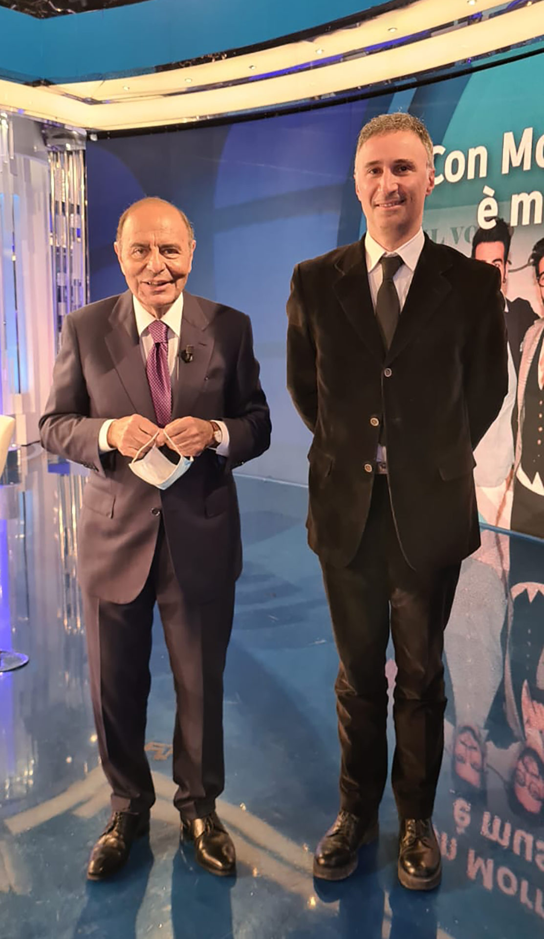 BRUNO VESPA E IL SINDACO DI GENGA MARCO FILIPPONI SUL SET DI PORTA A PORTA