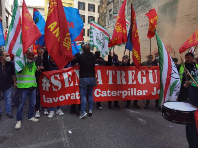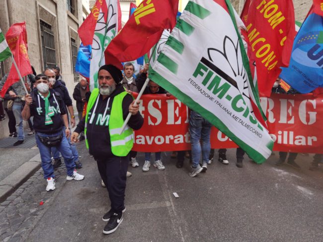 Corteo per le vie di Roma con cori, fischetti e fumogeni e poi un sit in davanti al Ministero dello Sviluppo economico. E’ iniziato così, oggi, il pomeriggio di circa 140 lavoratori della Caterpillar di Jesi arrivati nella capitale su due pullman e in treno per far sentire la propria voce davanti al Ministero dello Sviluppo Economico dove è in corso un nuovo tavolo di crisi.